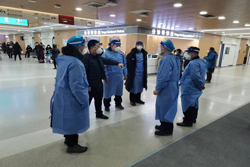 ? ? 2022年12月初,國家先后對新冠疫情防控措施進行了優(yōu)化,長春市對優(yōu)化措施進行了認真貫徹落實。嚴格管控之后的突然放開,導致了新冠病毒感染者的急劇增加,作為三甲醫(yī)院的長春市吉林大學中日聯(lián)誼醫(yī)院接診量劇增。在該院駐勤的長春保安集團經(jīng)開分公司保安執(zhí)勤隊也遇到了史無前例的工作困難和壓力。在這種情況下,經(jīng)開分公司經(jīng)理王震親臨一線,部署安排工作,帶領(lǐng)全體駐勤保安員與醫(yī)院同舟共濟、共克時艱。
