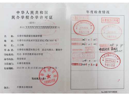 銀盾保安培訓學校辦學許可證