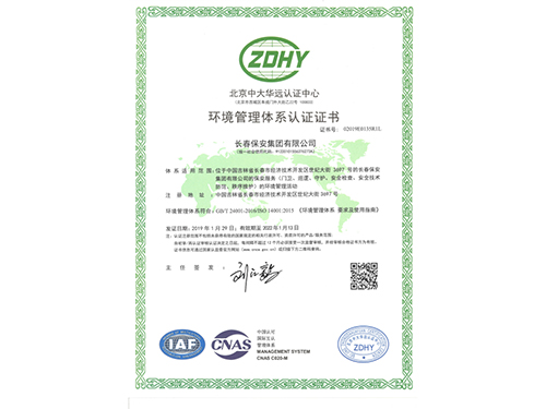 環境管理體系認證證書