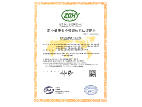 職業健康安全管理體系認證證書